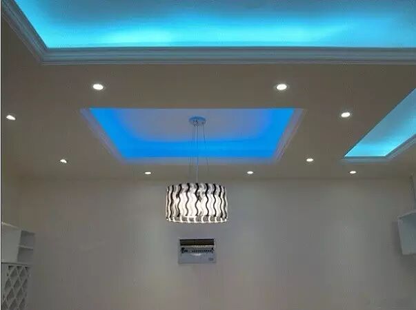 灯的颜色可用白色、黄色和蓝色(紫色)的。别的颜色千万别用,犹其是红色和绿色。前者简直是色情场所、后者变成了恐怖地带。装完灯,家里就亮了,告别了装修期间100瓦的白炽灯泡刺眼的强光。