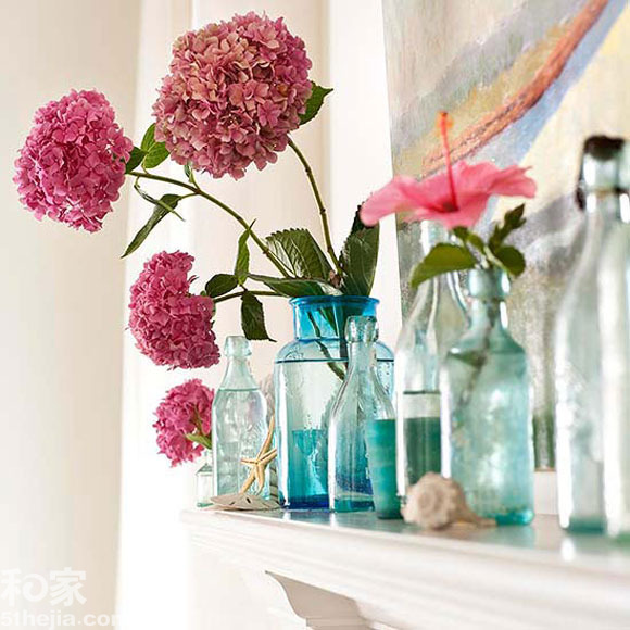 现在都流行节能环保,如果你恰好喜爱那些不同形状,不同颜色的瓶瓶罐罐,不妨把它们按照形状或者颜色都聚合在一起……然后就是女主人将花儿安放进去,让美丽合奏。 这也是一种