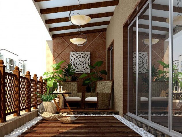 东南亚风格的装饰中,室内所用的材料多直接取自自然。由于炎热、潮湿的气候带来丰富的植物资源;木材、藤、竹成为室内装饰首选。
